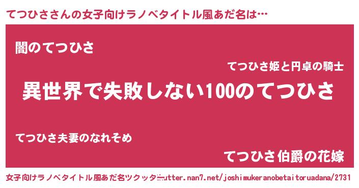 | 男性向けラノベタイトル風あだ名 | 『てつひさという概念が存在しない退屈な世界 』 |