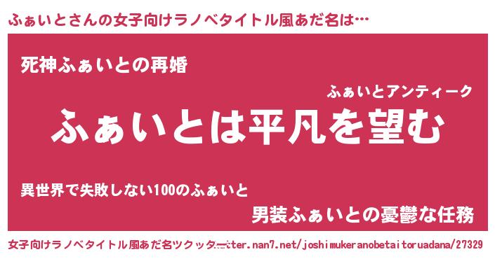 | ヒーロー風カッコイイあだ名 | 『黄金騎士ファ』『慈愛の使者ふぁいと』 |