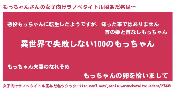| 胡散臭い通販商品みたいなあだ名 | 『絶対に幸福をもたらす健康食品…その名も「もっちゃん」』 |