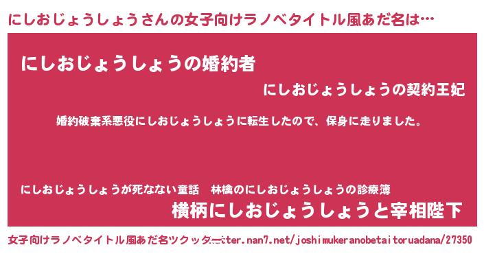 | 男性向けラノベタイトル風あだ名 | 『ニシオジョウショウスレイヤー』 |