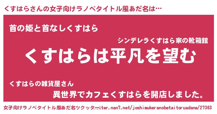 | ヘコむあだ名 | 『くすぷりん』『くすはら(遠い目)』 |