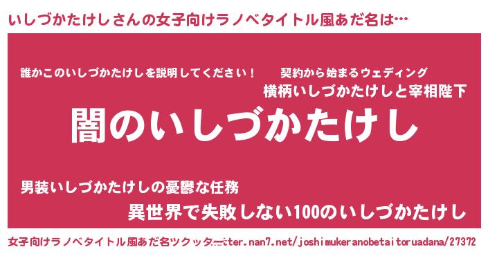 | 男性向けラノベタイトル風あだ名 | 『Re:いしづかたけしから始める異世界生活』 |