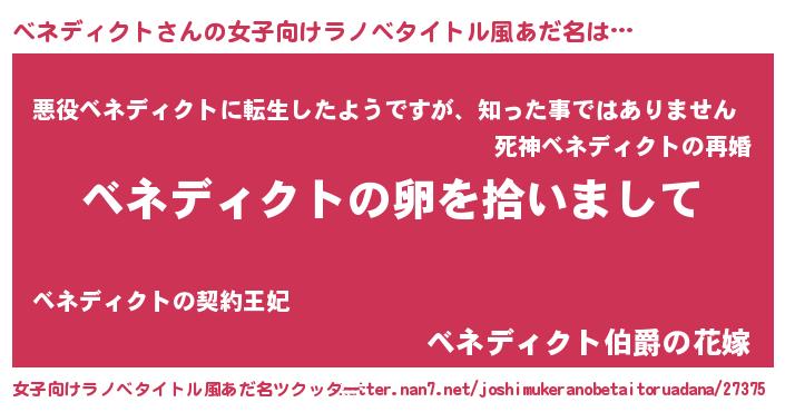 | 男性向けラノベタイトル風あだ名 | 『ベネディクトの嫁は女の子じゃないと思った?』 |