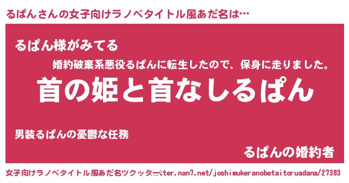 | 胡散臭い通販商品みたいなあだ名 | 『伝統あるサプリメント…その名も「るぱん」』 |