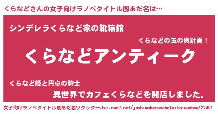 | 意味不明あだ名 | 『自称くらなど』『永久保存くらなど』 |