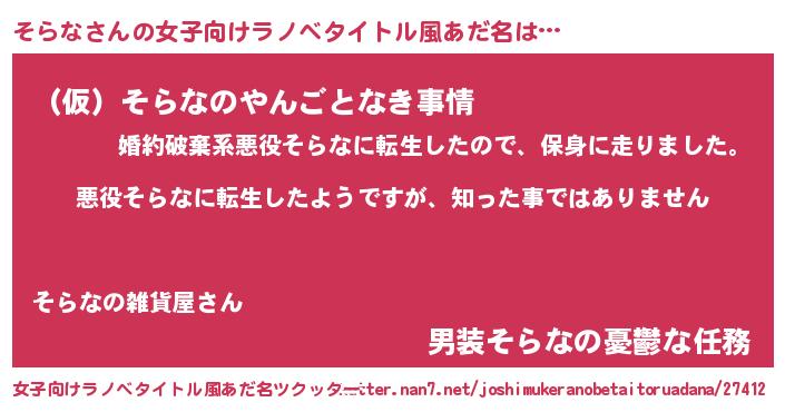 | 意味不明あだ名 | 『住所不定無職そらな(74歳)』 |