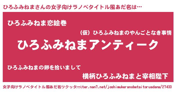 | 意味不明あだ名 | 『自称ひろふみねま』 |