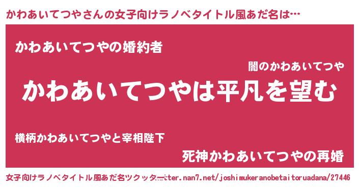 | 料理風あだ名 | 『かわあいてつやの豆乳スープ』 |