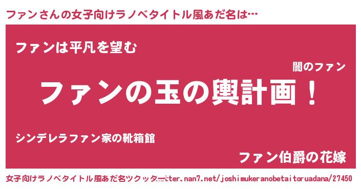| 男性向けラノベタイトル風あだ名 | 『転生したらファンだった件』 |