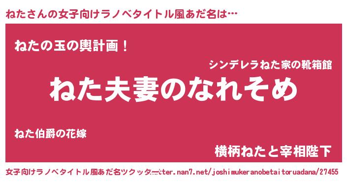 | 可愛いあだ名 | 『ねたちゅっちゅ』『ねたぷりん』 |