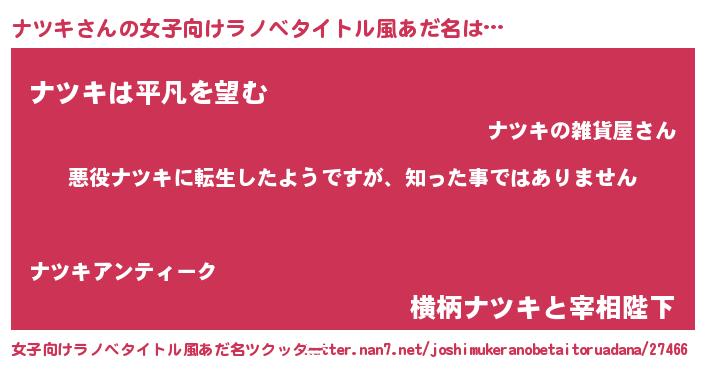 | 意味不明あだ名 | 『住所不定無職ナツキ(53歳)』『自称ナツキ』 |