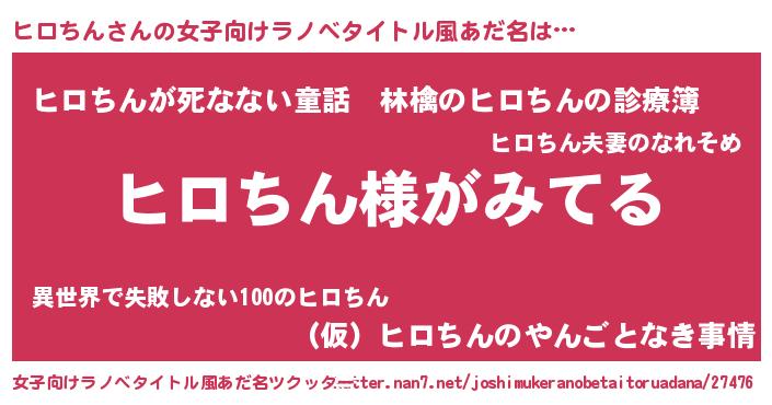 | ヘコむあだ名 | 『ヒロを』『ヒロふぇ~』『つくし』 |