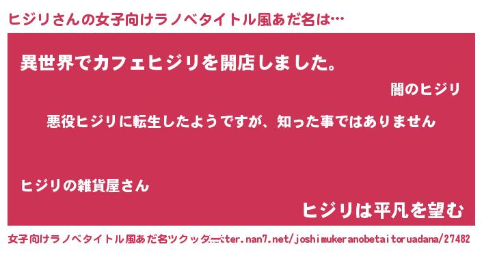 | 男性向けラノベタイトル風あだ名 | 『この素晴らしい世界にヒジリを!』 |