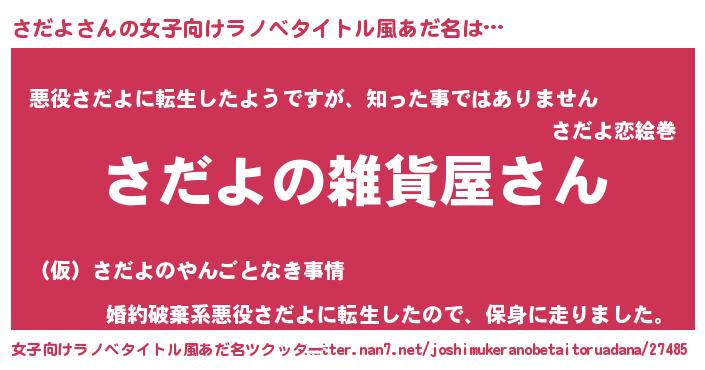 | 男性向けラノベタイトル風あだ名 | 『やはりさだよの青春ラブコメはまちがっている 』 |