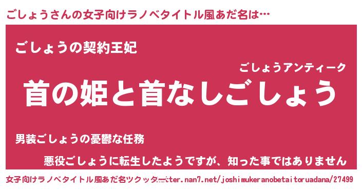 | 男性向けラノベタイトル風あだ名 | 『はたらくごしょうさま!』 |