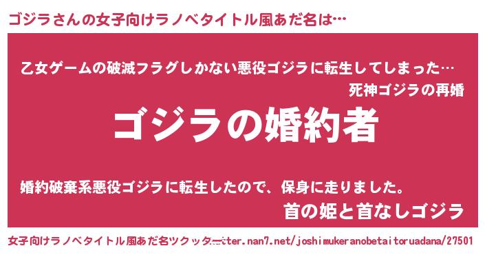 | 胡散臭い通販商品みたいなあだ名 | 『運命の人と巡り会える高級そうな壺…その名も「ゴジラ」』 |