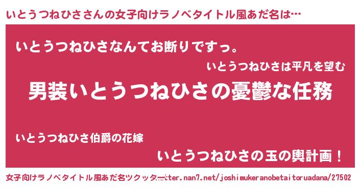| 意味不明あだ名 | 『自称いとうつねひさ』 |