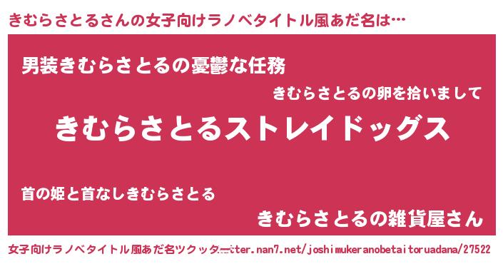 | 男性向けラノベタイトル風あだ名 | 『Re:きむらさとるから始める異世界生活』 |