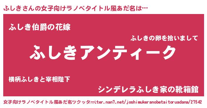 | 男性向けラノベタイトル風あだ名 | 『魔法科高校のふしき』『緋弾のフシキ』 |