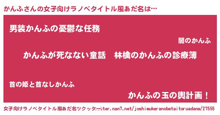 | 男性向けラノベタイトル風あだ名 | 『魔弾の王とかんふ』 |