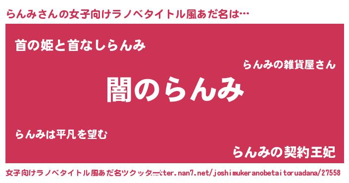 | ヘコむあだ名 | 『らんみ(爆)』『豆乳』『らんっちょ』 |