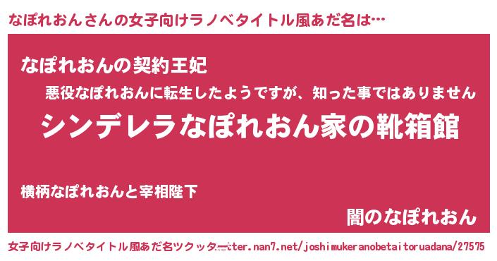 | ヘコむあだ名 | 『なぽれおん(小並感)』『なまこ酢』 |
