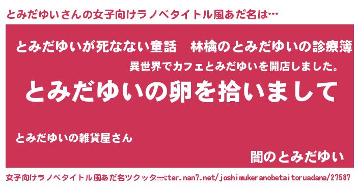 | 男性向けラノベタイトル風あだ名 | 『とみだゆいの嫁は女の子じゃないと思った?』 |