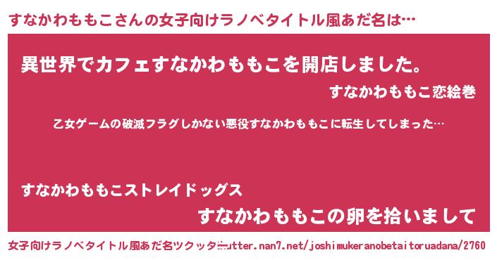 | 男性向けラノベタイトル風あだ名 | 『この素晴らしい世界にすなかわももこを!』 |