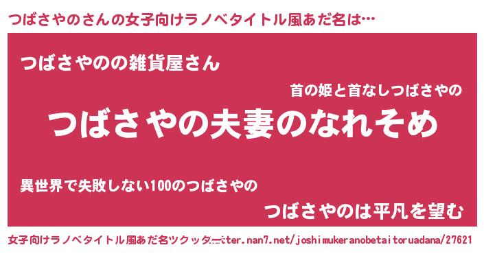 | 男性向けラノベタイトル風あだ名 | 『おまえをオタクにしてやるから、俺をつばさやのにしてくれ! 』 |