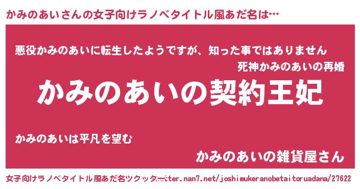 | 胡散臭い通販商品みたいなあだ名 | 『来世でも幸せになれる健康食品…その名も「かみのあい」』 |