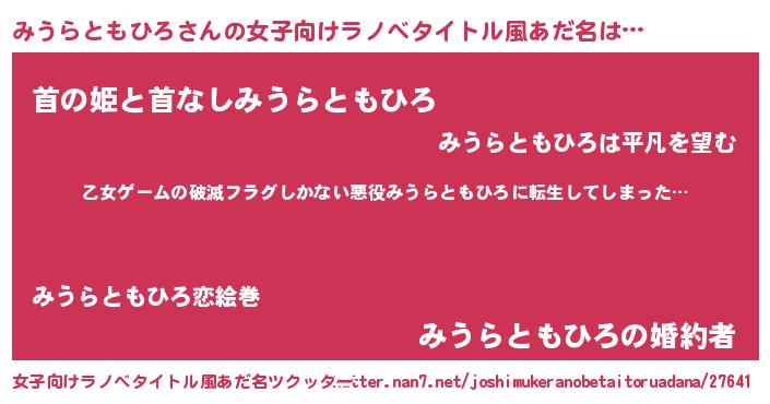 | 意味不明あだ名 | 『住所不定無職みうらともひろ(12歳)』 |