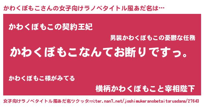 | 意味不明あだ名 | 『自称かわくぼもこ』 |