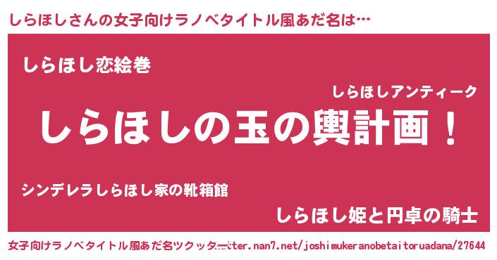 | 意味不明あだ名 | 『なめこ科しらほし属』『自称しらほし』 |