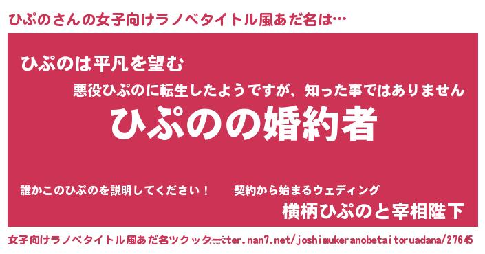 | 男性向けラノベタイトル風あだ名 | 『うちの娘の為ならば、俺はもしかしたらひぷのも倒せるかもしれない。』 |