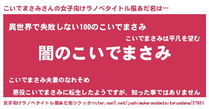 | 男性向けラノベタイトル風あだ名 | 『Re:こいでまさみから始める異世界生活』 |