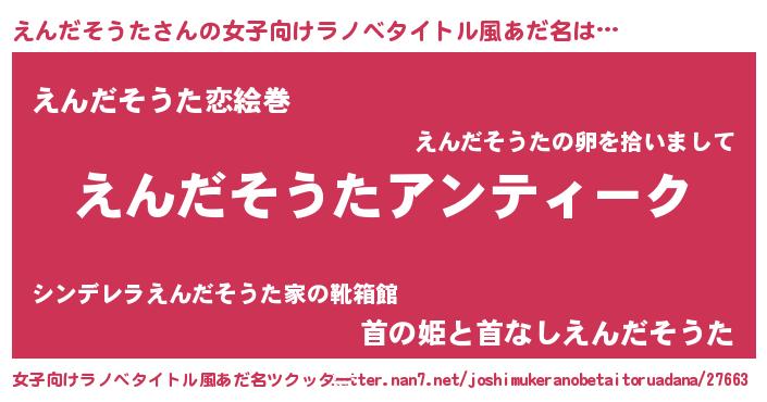 | ヘコむあだ名 | 『えん太郎』『えんだそうた(笑)』 |