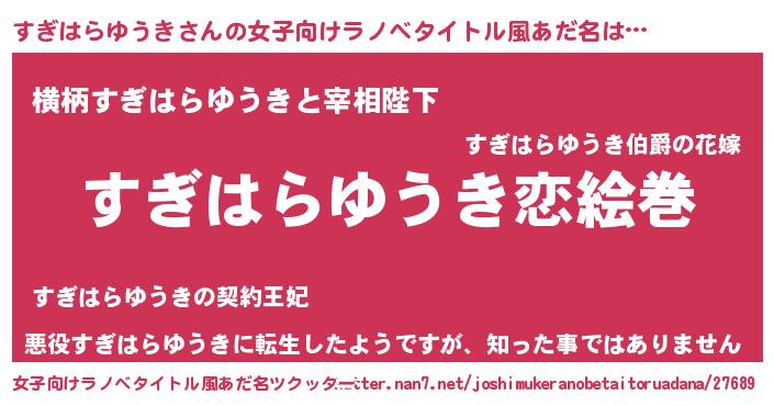 | 男性向けラノベタイトル風あだ名 | 『ノーゲーム・ノースギハラユウキ』 |