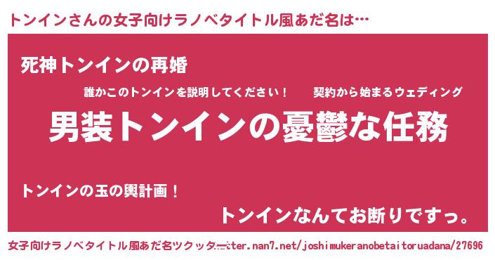 | 男性向けラノベタイトル風あだ名 | 『冴えないトンインの育てかた』 |