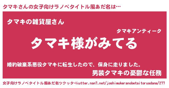 男性向けラノベタイトル風あだ名 | 『タマキの嫁は女の子じゃないと思った?』 |