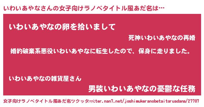 | 胡散臭い通販商品みたいなあだ名 | 『信頼と実績のネックレス…その名も「いわいあやな」』 |