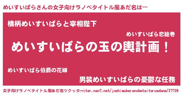 | 男性向けラノベタイトル風あだ名 | 『めいすいばら~年齢イコール彼女いない歴の魔法使い~』 |