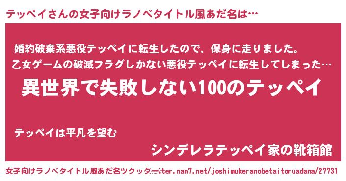| 意味不明あだ名 | 『永久保存テッペイ』 |