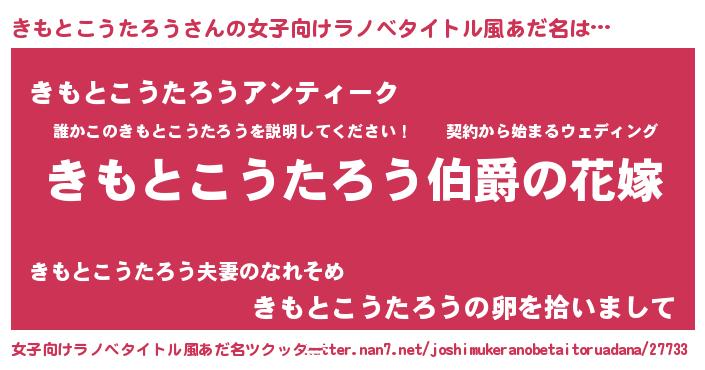| 男性向けラノベタイトル風あだ名 | 『やはりきもとこうたろうの青春ラブコメはまちがっている 』 |