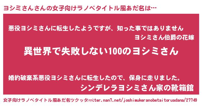 | ファンタジー風あだ名 | 『ヨシディッシュ』『ヴァルヨシーナ』 |