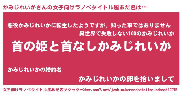 | 意味不明あだ名 | 『住所不定無職かみじれいか(8歳)』 |