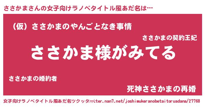 | 肩書あだ名 | 『ささかまリーダー』『ささかま社長令嬢』 |
