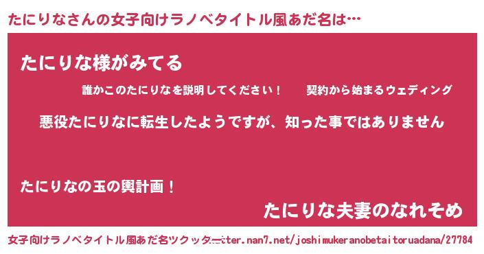 | 意味不明あだ名 | 『住所不定無職たにりな(39歳)』 |