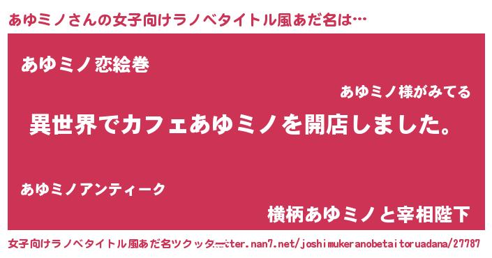 | 男性向けラノベタイトル風あだ名 | 『誰もが恐れるあのあゆミノが、ぼくの専属メイドになるようです。』 |