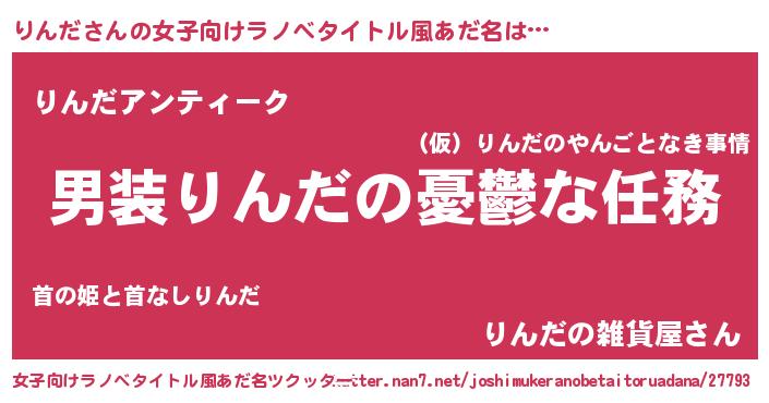 | 男性向けラノベタイトル風あだ名 | 『うちのりんだが世界を掌握している!』 |