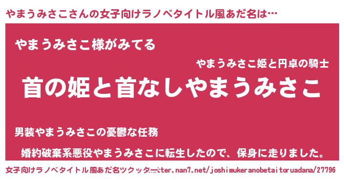 | 胡散臭い通販商品みたいなあだ名 | 『信頼と実績のペンダント…その名も「やまうみさこ」』 |